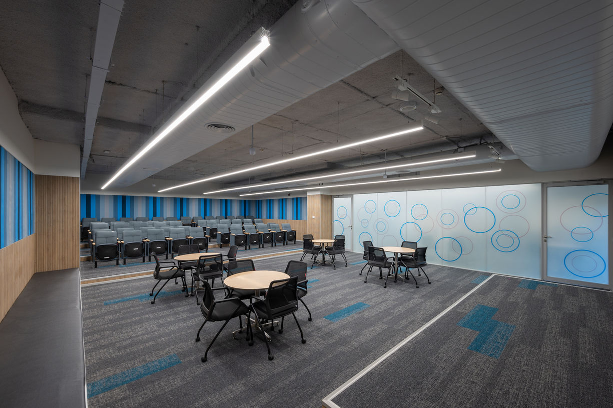 A neutral color palette, complemented by accents aligning with the brand colors, harmoniously adorns the interiors, creating a cohesive and inviting ambiance that reflects the company's identity and values.